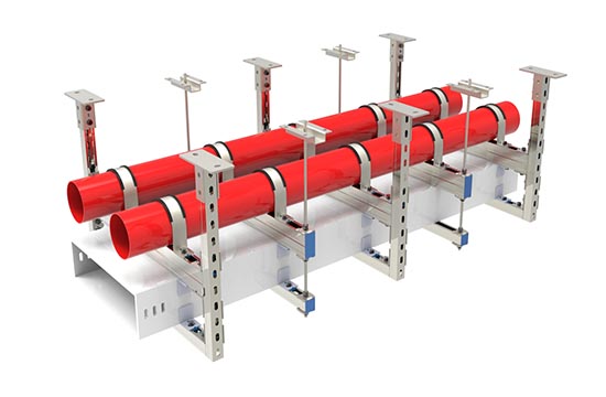 1)、冷熱水、消防、空調等管道系統抗震支吊架適用范圍:懸吊管道中所有超過1.8kN的設備;所有大于等于DN65...